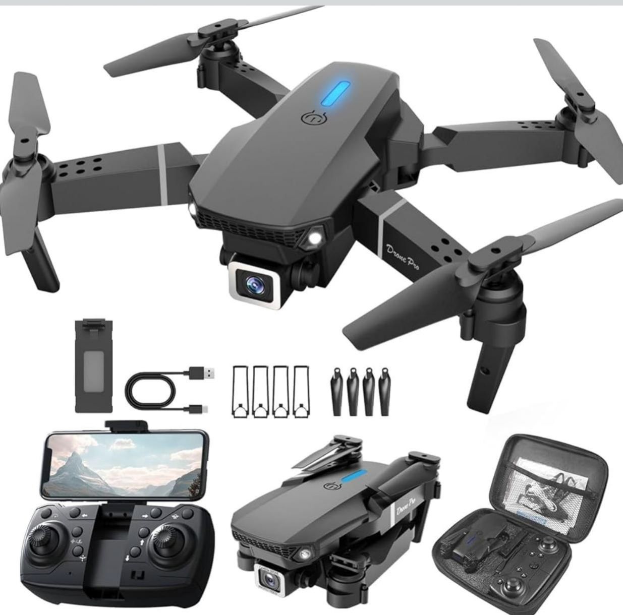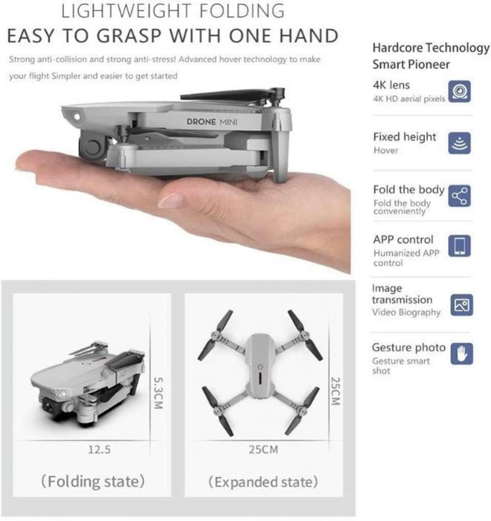 4K Camera Foldable Drone for Kids & Adults, One Key Takeoff/Landing, Trajectory Flight, Bright LED Lights