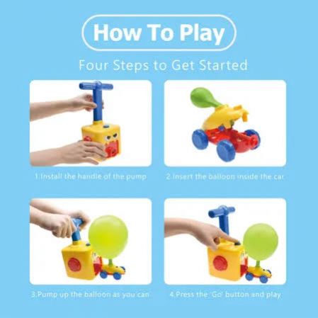 Fun balloon-powered cartoon car toy that helps kids learn basic physics through play. Easy to use, hands-on, and perfect for early STEM learning. Made from durable, child-safe materials. Suitable for children ages 3+.