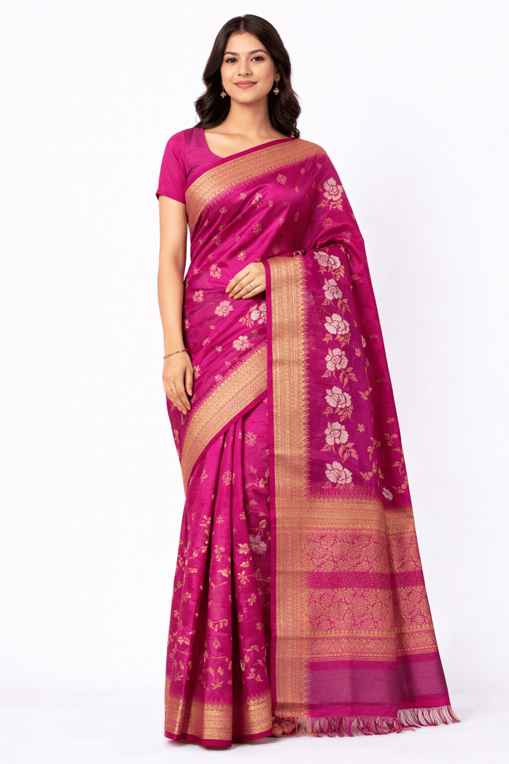 Kubera Pattu Saree with Rich Zari Border & Floral Design