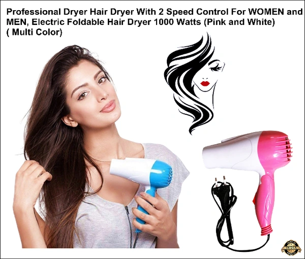 New Nova NV-1290 1000W Foldable Hair Dryer is a compact and lightweight hair dryer designed for easy daily use and travel. It features a foldable handle for convenient storage, 1000W power for quick drying, and an ergonomic design for comfortable handling. Ideal for home, travel, and personal grooming, this portable hair dryer offers efficient performance in a stylish pink and white finish.